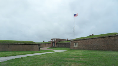 We've seen Ft. McHenry from the Inner Harbor and the harbor cruise, so we thought we should drop by and see it in person yesterday. We had a stiff breeze while we were over there, so we were easily able to get a picture of the Star Spangled Banner that inspired our national anthem.